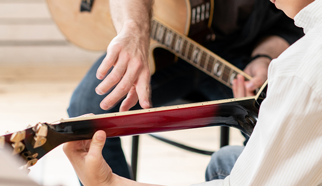 Je wil gitaar leren spelen zonder meteen in notenleer te verdrinken. Je zoekt plezier, eerste liedjes en een docent die het rustig uitlegt en de lessen aanpast aan jouw tempo.